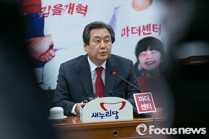 (서울=포커스뉴스) 김무성 새누리당 대표가 16일 오후 서울 여의도 국회에서 긴급 기자회견을 하기 위해 자리에 앉고 있다. 김 대표는 이 자리에서 "오전에 열린 최고위원회의에서 단수 추천지역 7곳과 우선 추천지역 1곳을 공천관리위원회에 보류 요청했다"고 밝혔다.
