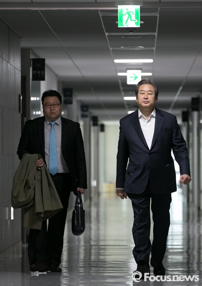 (서울=포커스뉴스) 김무성(오른쪽) 새누리당 대표가 17일 오전 서울 여의도 국회 의원회관 의원실로 출근하고 있다.