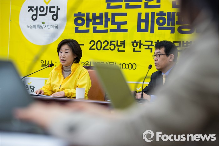 (서울=포커스뉴스) 심상정 정의당 상임대표(왼쪽)가 김종대 예비 국방장관(오른쪽 두번째)과 함께 17일 오전 서울 여의도 국회에서 국방정책기조 및 대표공약 발표 기자회견을 하고 있다.