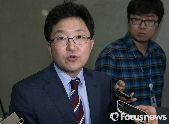 (서울=포커스뉴스) 김용태 새누리당 서울시당위원장이 17일 오전 서울 여의도 국회 정론관에서 당 공천에 대한 입장발표를 마친 뒤 취재진 질문에 답하고 있다.