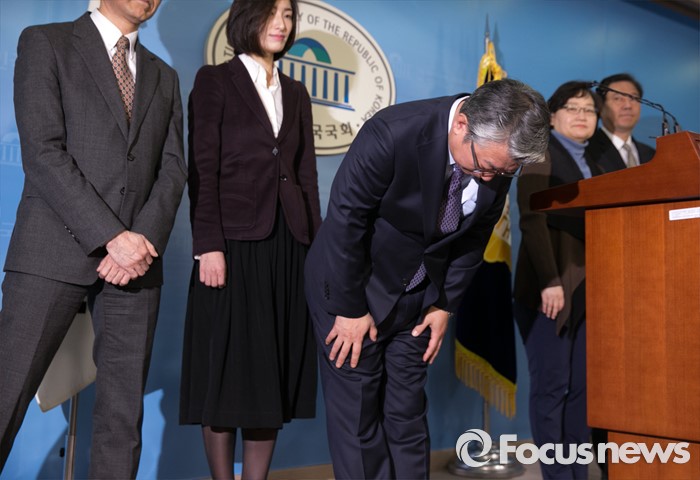 (서울=포커스뉴스) 더불어민주당에 입당한 조응천 전 청와대 공직기강비서관이 17일 오전 서울 여의도 국회 정론관에서 20대 총선 경기 남양주갑 출마 선언을 마친 뒤 인사하고 있다.