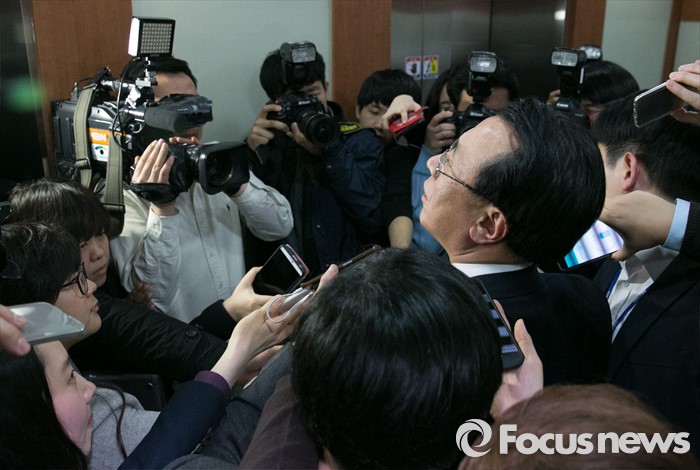 (서울=포커스뉴스) 새누리당 공천관리위원회 외부위원들이 김무성 대표의 사과를 요구하며 회의를 보이콧한 17일 오후 서울 여의도 당사에서 회의를 마친 김회선 위원이 취재진 질문을 받으며 나서고 있다.