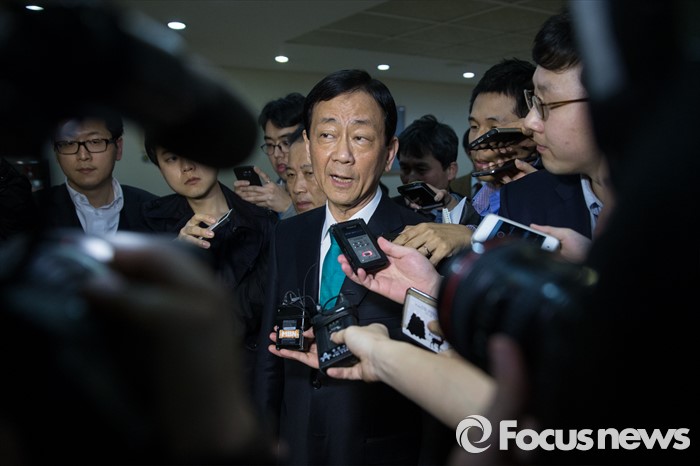 (서울=포커스뉴스) 공천에서 배제 된 새누리당 3선 중진 진영 의원이 17일 오후 서울 여의도 국회 정론관에서 탈당 기자회견을 마친 후 기자들의 질문을 받고 있다.