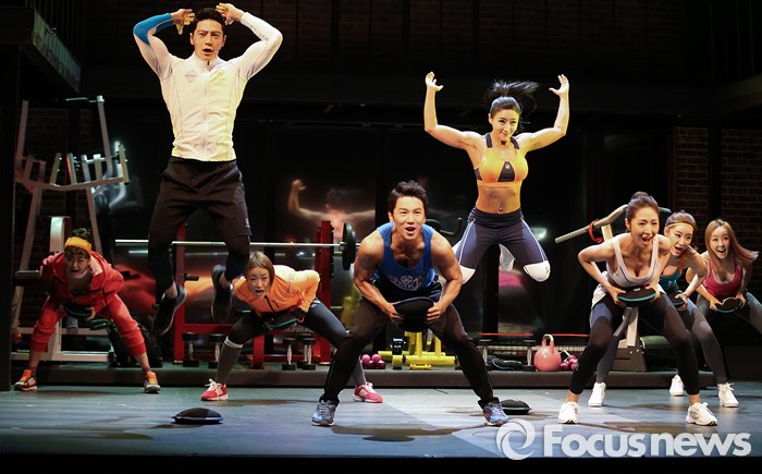 (서울=포커스뉴스) 3일 오후 서울 종로구 유니플렉스에서 열린 뮤지컬 '로멘틱 머슬' 프레스콜에 참석한 배우들이 주요장면을 시연하고 있다.