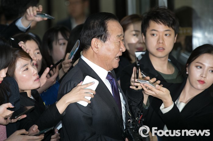 (서울=포커스뉴스) 서청원 새누리당 최고위원이 18일 오전 서울 여의도 국회에서 열린 비공개 최고위원회의를 마친 뒤, 기자들의 질문을 들으며 밖으로 나가고 있다.
