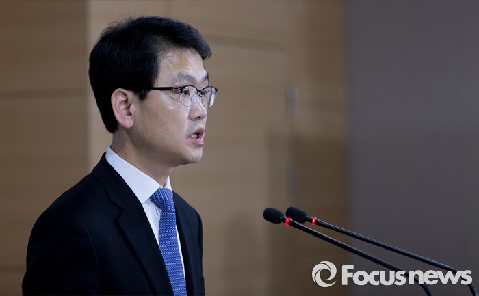 (서울=포커스뉴스) 18일 오전 서울 종로구 정부서울청사 브리핑룸에서 이승복 교육부 대변인이 일본 고등학교 사회 교과서 검정결과에 대한 규탄 성명을 발표하고 있다.