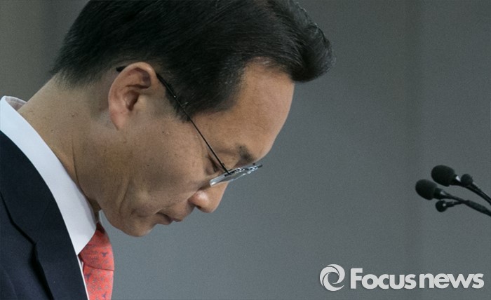 (서울=포커스뉴스) 공천 탈락한 조해진 새누리당 의원이 18일 오전 서울 여의도 국회 정론관에서 탈당 및 20대 총선 무소속 출마 기자회견을 마친 뒤 인사하고 있다.