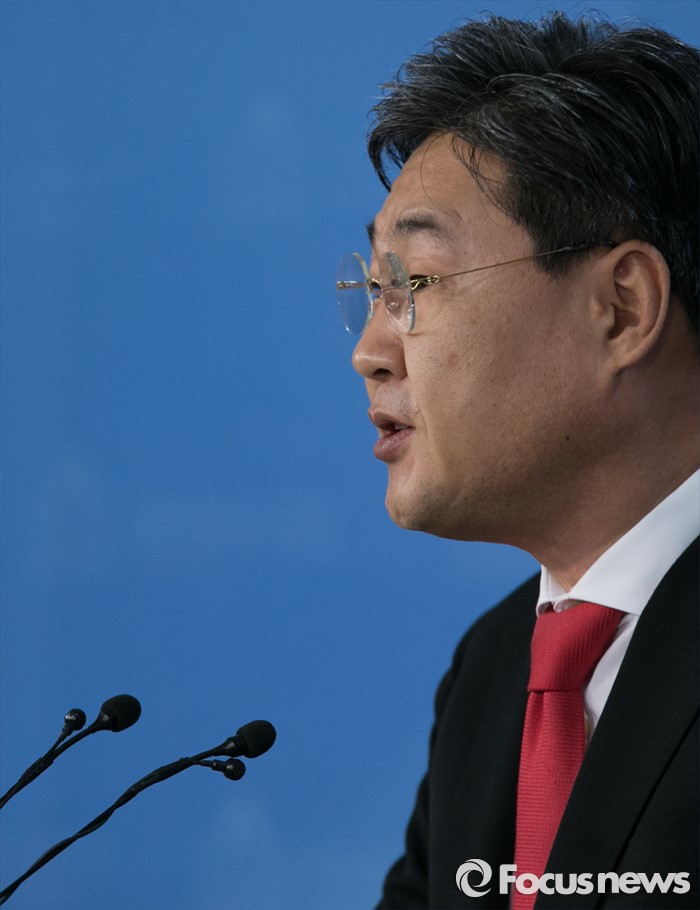 (서울=포커스뉴스) 새누리당 20대 총선 후보 경선에서 탈락한 정문헌 의원이 18일 오전 서울 여의도 국회 정론관에서 여론조사 등과 관련 당 공천관리위원회의 발표에 이의를 제기하는 기자회견을 하고 있다.