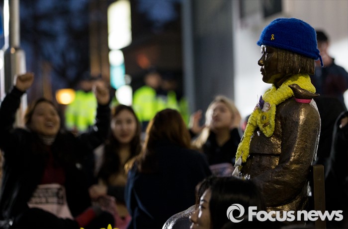 (서울=포커스뉴스) 대학생들이 위안부 합의 폐기를 촉구하는 24시간 노숙 농성에 나섰다.