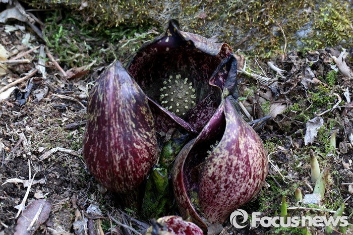 (하남=포커스뉴스)봄 기운이 완연한 19일 오전 경기도 하남시 검단산자락에 앉은부채들이 겨우내 얼었던 대지를 뚫고 돋아나 새봄을 알리고 있다. 보랏빛을 띠는 꽃이 먼저피고 잎은 꽃이 시든 후에 펼쳐진다.<사진제공=이준택교수>