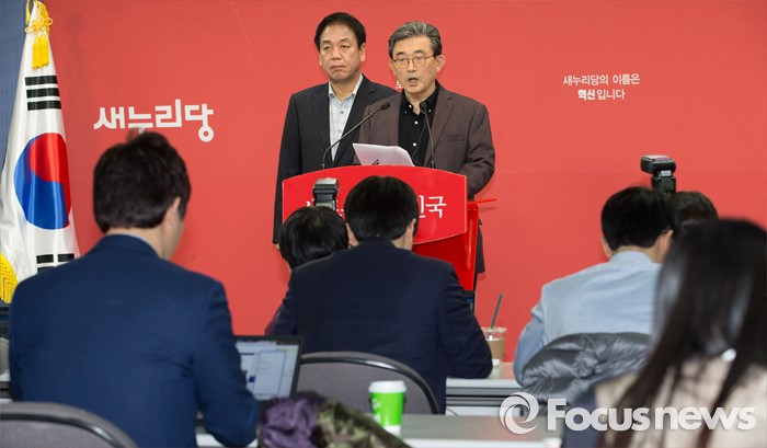 (서울=포커스뉴스) 이한구 공천관리위원장이 박종희 공관위원과 함께 19일 오후 서울 영등포구 새누리당사에서 총선 공천을 위한 여론조사 경선 결과를 발표하고 있다.