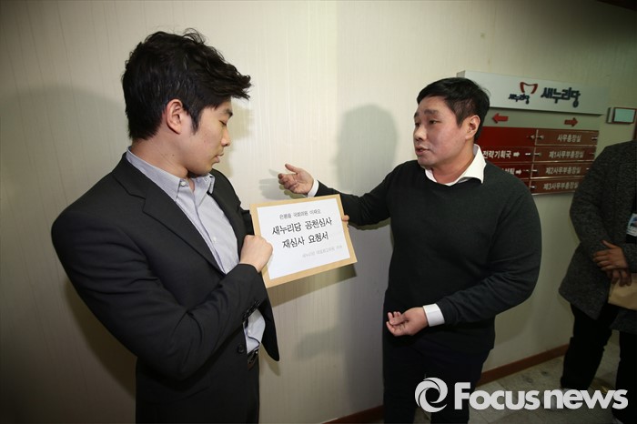 (서울=포커스뉴스) 19일 오후 서울 영등포구 새누리당사에서 이재오 의원 측 보좌관이 공천심사 재심사 요청서를 제출하기 위해 방문, 당직자에게 전달하고 있다.