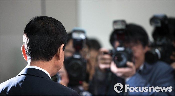 | △ 기자회견장 나서는 진영 의원의 뒷모습 |