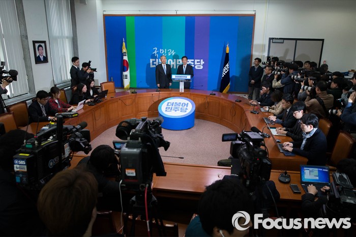 (서울=포커스뉴스) 새누리당에서 공천 배제된 뒤 탈당한 진영 의원이 20일 오전 서울 여의도 국회에서 더불어민주당 공식 입당을 알리는 기자회견을 하고 있다.