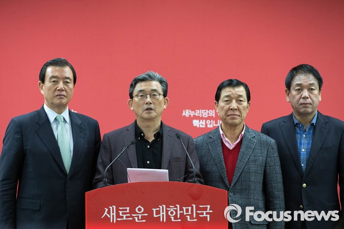 (서울=포커스뉴스) 이한구(왼쪽 두번째) 공천관리위원장이 20일 오후 서울 여의도 새누리당 당사에서 20대 총선 공천경선지역 여론조사 결과를 발표하고 있다.