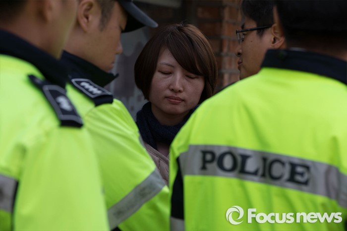 | △ 경찰벽에 막힌 백도라지씨 |