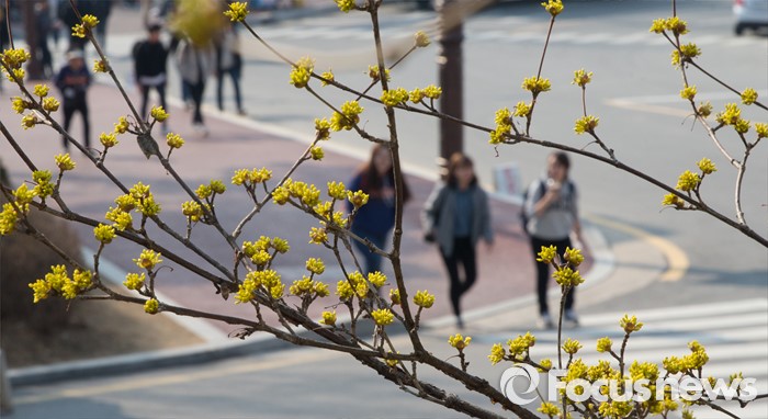 기상청 관계자는 "당분간 평년보다 높은 기온을 보이겠지만 낮과 밤의 기온차가 10도 내외로 커 건강관리에 유의해야 한다"고 당부했다.충북 청주시 청원구 청주대학교 캠퍼스에서 만개한 산수유 아래로 학생들이 지나고 있다. 2016.03.17 김기태 기자