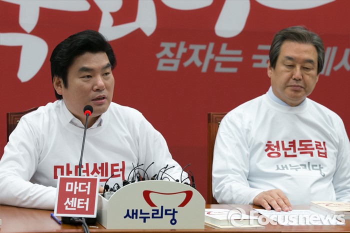 (서울=포커스뉴스) 김무성(오른쪽) 새누리당 대표가 21일 오전 서울 여의도 국회에서 열린 최고위원회의에 참석해, 원유철 원내대표의 발언을 경청하고 있다.