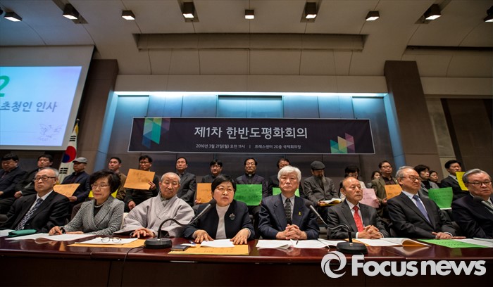 (서울=포커스뉴스) 정현백 민족화해협력범국민협의회 의장이 21일 오전 서울 중구 프레스센터 국제회의장에서 열린 '제1차 한반도평화회의'에 참석해 발언 하고 있다.