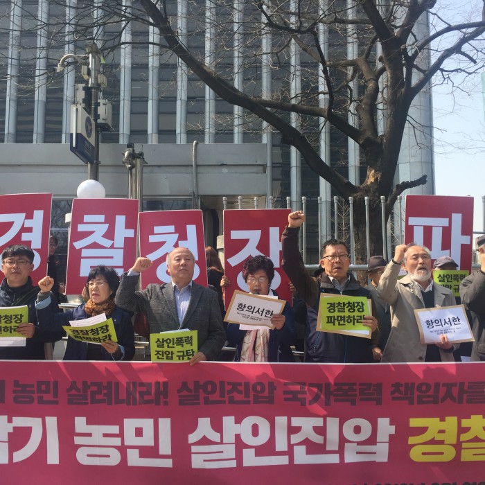 백남기 농민의 쾌유와 국가폭력 규탄 범국민대책위원회(대책위)는 21일 서울 서대문구 경찰청 앞에서 "지난해 11월 14일 백남기 농민이 경찰의 물대포에 맞고 쓰러진지 129일이 지났다"며 "그러나 경찰은 아무런 사과 표명도 하지 않았다"고 경찰의 사후조치 문제점을 지적했다.
