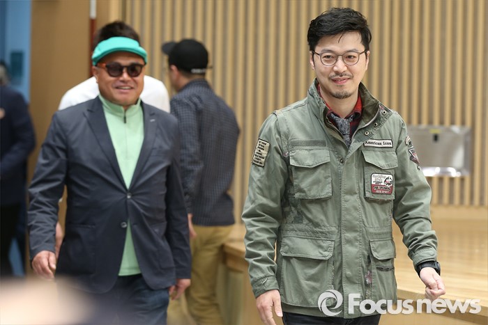 (서울-포커스뉴스) 21일 오후 서울 SBS 목동사옥에서 열린 SBS 라디오 봄 개편 기자간담회에 참석한 영화감독 봉만대(오른쪽)이 자리를 향해 이동하고 있다.