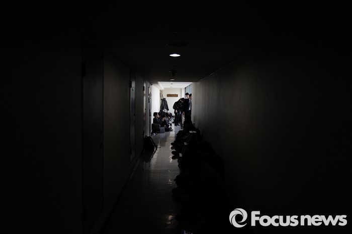 (서울=포커스뉴스) 김종인 더불어민주당 비상대책위 대표의 비례대표 2번 공천으로 김종인 대 친노, 범주류 간 논란이 거세지고 있는 21일 오후 서울 종로구 김 대표의 사무실 앞에서 취재진들이 몰리고 있다.