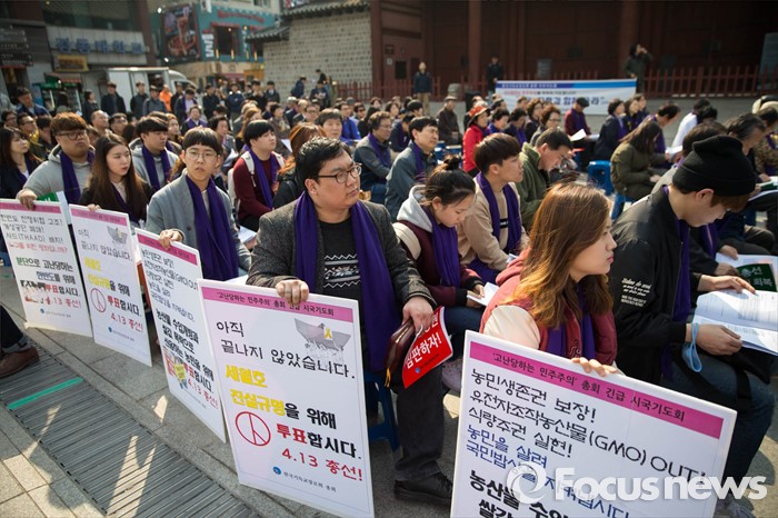 (서울=포커스뉴스) 21일 오후 서울 중구 덕수궁 대한문 앞에서 한국기독교 장로회 총회 '고난당하는 민주주의를 위한 시국기도회'가 열리고 있다.