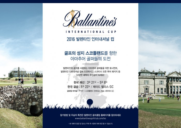 '2016 발렌타인 인터내셔널 컵'은 각국의 지역 결승전을 거친 우승자들이 스코틀랜드에서 열리는 글로벌 파이널 대회를 통해 최종 챔피언을 선발하는 국제적 규모의 아마추어 골프 토너먼트로, 발렌타인과 골프를 사랑하는 아마추어 골퍼라면 누구나 참가 가능한 대회이다.