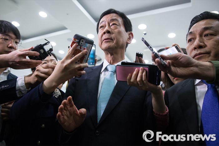 (서울=포커스뉴스) 새누리당을 탈당한 후 더불어민주당에 합류한 진영 의원이 21일 오후 서울 여의도 국회 의원회관 중앙위원회 회의에 참석했다가 회의가 8시로 연기 된 사실을 알고 되돌아 가고 있다.