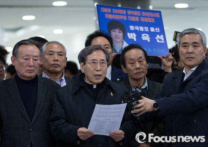 | △ '셀프 공천' 취소 기자회견 하는 함세웅 신부 |
