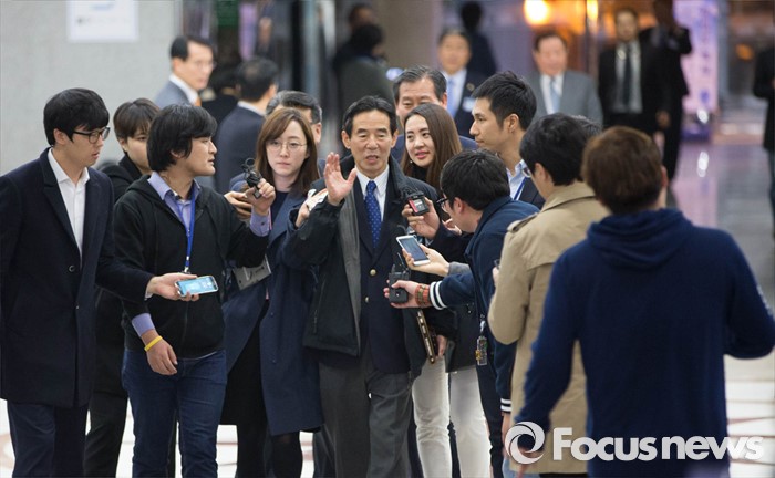 (서울=포커스뉴스) 비례대표 선정을 놓고 김종인 비대위 대표가 당무를 거부하는 등 더불어민주당의 진통이 계속되고 있는 21일 오후 홍창선 더민주 공천관리위원장이 서울 여의도 국회 의원회관에서 열린 중앙위원회 회견장으로 들어서고 있다. 이날 김종인 비대위 대표는 당무를 거부하고 중앙위 회의에 불참했다.