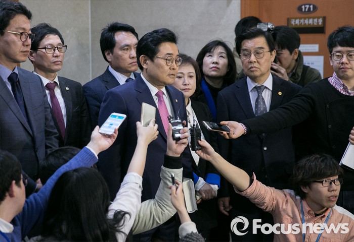 (서울=포커스뉴스) 20대 총선을 앞두고 공천 배제(컷오프)된 전병헌 더불어민주당 의원이 22일 오전 서울 여의도 국회 정론관에서 대선승리를 위한 백의종군 선언 기자회견을 마친 뒤 취재진 질문에 답하고 있다.