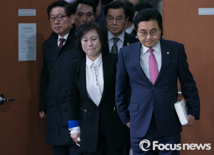 (서울=포커스뉴스) 20대 총선을 앞두고 공천 배제(컷오프)된 전병헌(오른쪽) 더불어민주당 의원이 22일 오전 서울 여의도 국회 정론관에서 대선승리를 위한 백의종군 선언 기자회견에 아내 조영아 씨와 함께 참석하고 있다.