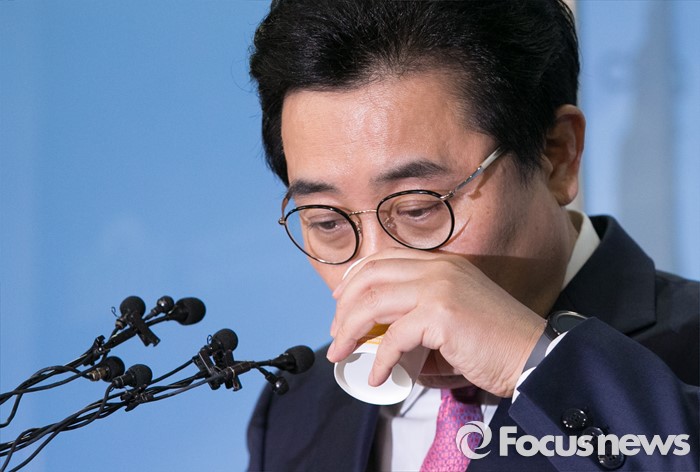 (서울=포커스뉴스) 20대 총선을 앞두고 공천 배제(컷오프)된 전병헌 더불어민주당 의원이 22일 오전 서울 여의도 국회 정론관에서 대선승리를 위한 백의종군 선언 기자회견에 앞서 물을 마시고 있다.