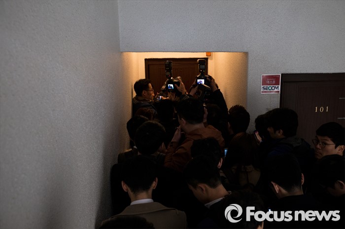 (서울=포커스뉴스) 더불어민주당의 비상대책위원회의가 오후 3시로 연기된 22일 오전 서울 종로구 김종인 비상대책위 대표 자택 앞에 취재진이 몰려 있다. 앞서 김성수 대변인은 이날 오전 11시에 열리는 비대위에 김 대표가 참석하며 당무에 복귀한다고 밝혔으나 김 대표는 자택에 머물며 모습을 드러내지 않고 있다.