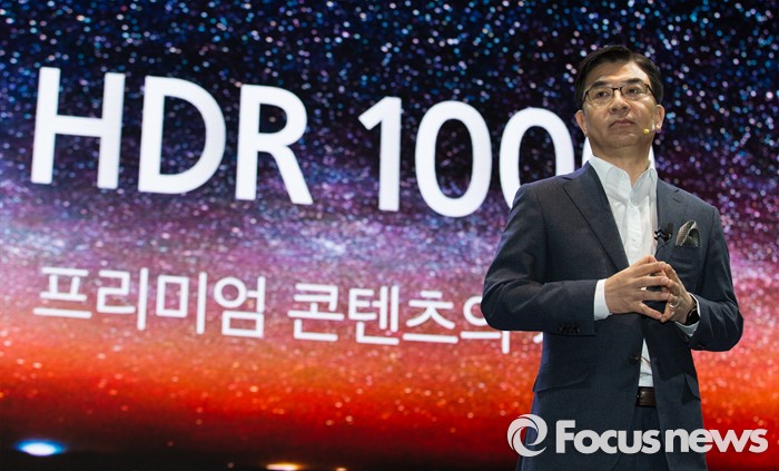 (서울=포커스뉴스) 김현석 삼성전자 영상디스플레이사업부 사장이 22일 오전 서울 강남구 삼성전자 서초사옥에서 열린 '퀀텀닷 디스플레이 SUHD TV' 미디어데이에 참석해 제품소개를 하고 있다.