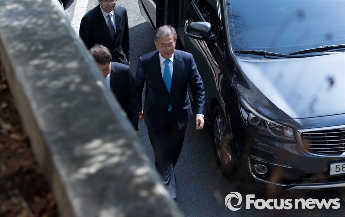 (서울=포커스뉴스) 문재인 더불어민주당 전 대표가 김종인 비상대책위원회 대표를 만나기 위해 22일 오후 서울 종로구 구기동의 김 대표 자택으로 향하고 있다.