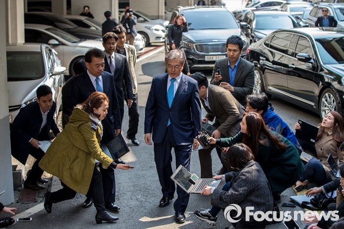 (서울=포커스뉴스) 문재인 전 더불어민주당 대표가 김종인 비상대책위 대표와 면담하기 위해 22일 오후 서울 종로구 김 대표 자택으로 이동하고 있다.