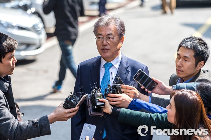 | △ 취재진 질문 받는 문재인 전 대표 |