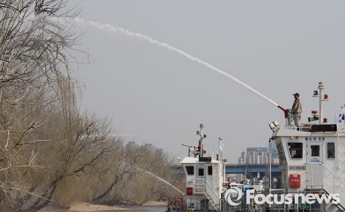 (서울=포커스뉴스) 22일 오후 서울 영등포구 밤섬에서 한강사업본부 관계자들이 조류 산란기 전 버드나무에 쌓인 민물가마우지의 배설물 등을 청소하고 있다.