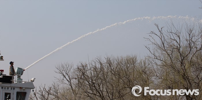 (서울=포커스뉴스) 22일 오후 서울 영등포구 밤섬에서 한강사업본부 관계자들이 조류 산란기 전 버드나무에 쌓인 민물가마우지의 배설물 등을 청소하고 있다.