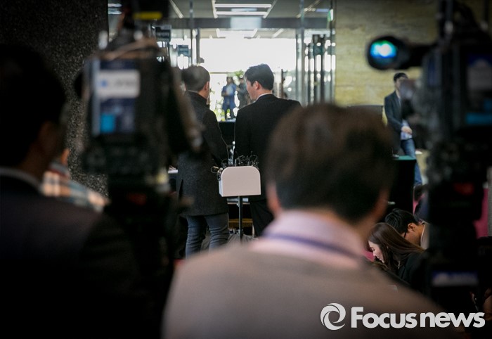 (서울=포커스뉴스) 22일 오후 서울 여의도 국회에서 취재진이 비공개 회의에 참석한 김종인 더불어민주당 비대위 대표를 기다리고 있다.