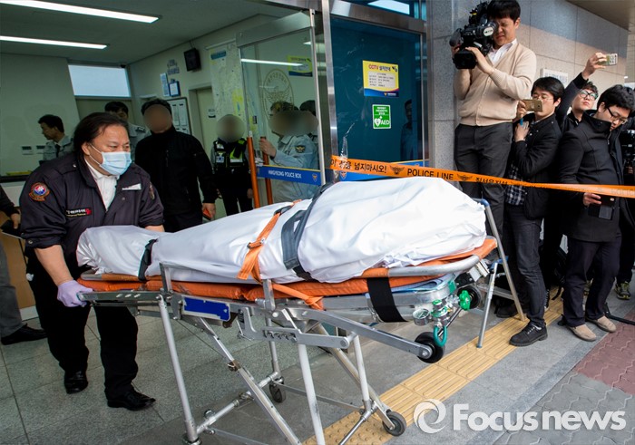구급차로 향하는 시신