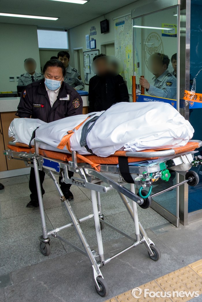 | △ 시신 옮기는 구급대원 |