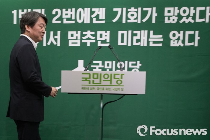 (서울=포커스뉴스) 22일 오후 서울 마포구 국민의당 당사에서 열린 PI 론칭 발표 행사에서 안철수 국민의당 상임공동대표가 들어서고 있다.