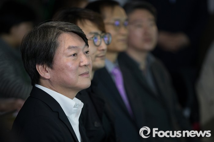 (서울=포커스뉴스) 22일 오후 서울 마포구 국민의당 당사에서 열린 PI 론칭 발표 행사에서 안철수 국민의당 상임공동대표가 들어서고 있다.