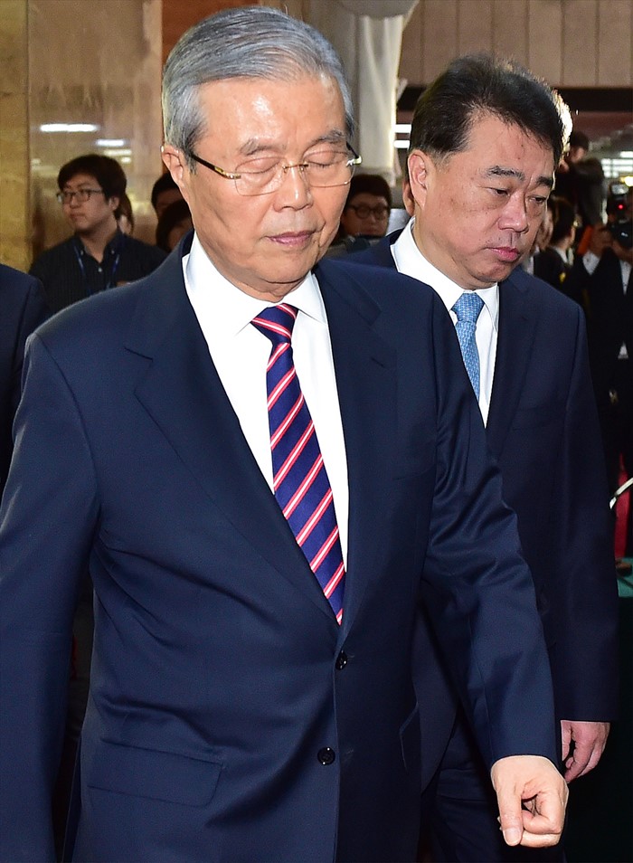 (서울=포커스뉴스) 20대 총선 비례대표 후보자 순번 등 논란으로 당무를 거부했던 김종인 더불어민주당 비대위 대표가 22일 오후 서울 여의도 국회에서 열린 비공개 회의에 참석하고 있다. 오른쪽은 김성수 대변인.