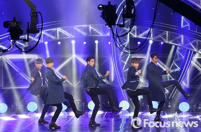 (서울=포커스뉴스) 22일 오후 서울 마포구 SBS프리즘 타워에서 열린 2016 '더쇼' 생방송에 참여한 보이그룹 크나큰이' Knock'의 무대를 선보이고 있다.