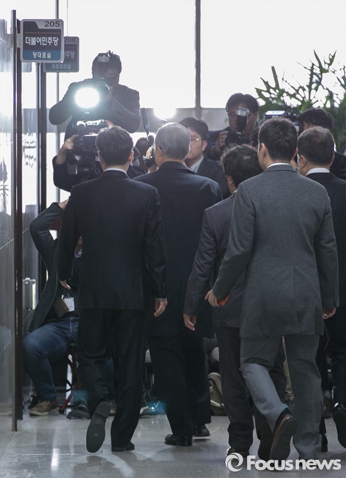 (서울=포커스뉴스) 사퇴여부와 관련 표현을 하지 않고 있는 김종인 더불어민주당 비대위 대표가 23일 오전 서울 여의도 국회에서 열리는 비공개 회의에 참석하고 있다.