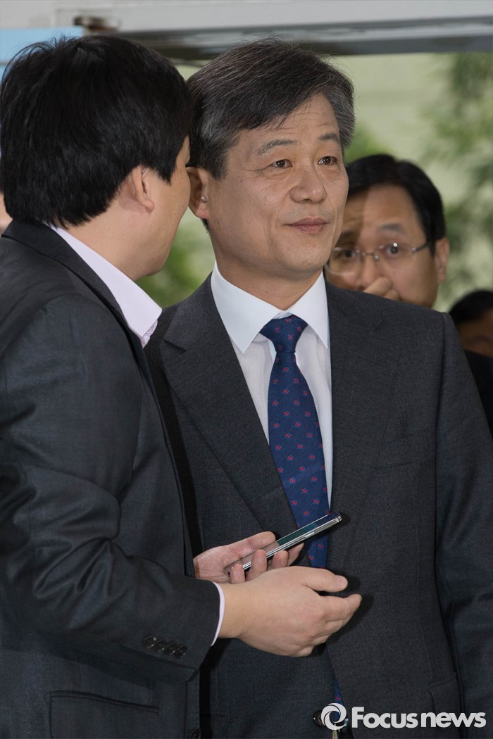 (과천=포커스뉴스) 20대 총선 후보자 등록을 앞둔 23일 오전 경기도 정부 과천 청사에서 이인복 중앙선거관리위원장이 공명선거 관련 대국민 담화문 발표에 앞서 관계자들과 이야기 하고 있다.